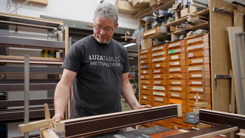 Wie entsteht ein Möbelstück, das Menschen zusammenbringt? In ihrer Kölner Tischlerei verwandeln Roland und Simone Collin nachhaltiges Holz in handgefertigte Brettspieltische – mit viel Hingabe und Präzision. Seit über 20 Jahren leben sie ihre Leidenschaft für das Handwerk und haben sich seit 2016 ganz auf dieses besondere Möbelstück spezialisiert. Ihre Arbeit zeigt, wie aus einem natürlichen Werkstoff und echter Begeisterung etwas entsteht, das nicht nur funktional ist, sondern auch Freude schenkt.