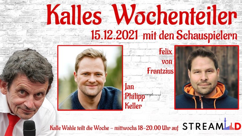 Das Theater an der Luegallee in Düsseldorf veranstaltet jedes Jahr weihnachtliche Lesungen. Unter dem Titel "Stollen und Plätzchen" finden auch in diesem Jahr wieder Lesungen an den vier Adventssonntagen statt. Die Schauspieler Felix von Frantzius und Jan-Philip Keller machen bei den Lesungen als Darsteller mit. In der Sendung "Kalles Wochenteiler" verraten sie, welche Geschichten es bei "Stollen und Plätzchen" in diesem Jahr gibt. Außerdem sind beide Schauspieler auch regulär Teil des Ensembles vom "Theater an der Luegallee". Im Interview erzählen sie von ihrer Schauspiel-Karriere. Und: Felix von Frantzius und Jan-Philip Keller berichten, wie sie die Weihnachtsfeiertage verbringen.