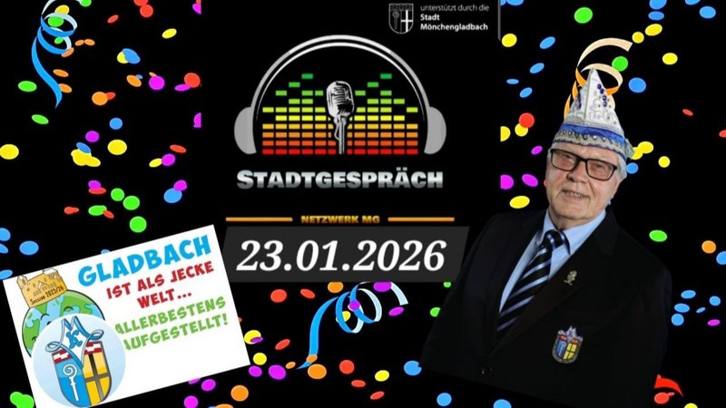Zu Gast im "Stadtgespräch" ist Ralf Noehles vom "Mönchengladbacher Karnevals Verband" (MKV). Gemeinsam geht's um alles, was in der Session 2025/26 los ist: vom Prinzenpaar bis zum großen Veilchendienstagszug.